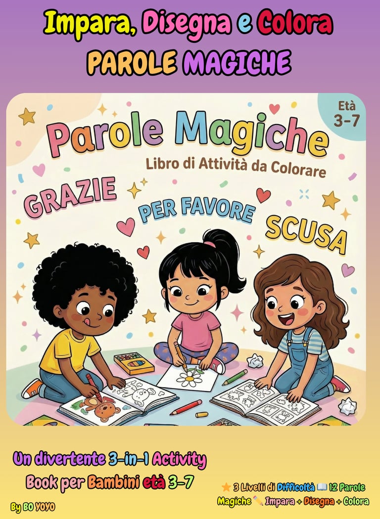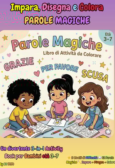 Questo Coloring Book è pensato proprio per aiutare la mente dei bambini a imparare che le parole possono fare magie.